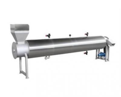 該機(jī)是螺旋推進(jìn)式連續(xù)軟化處理設(shè)備,水果在打漿之前為了提高水果的出漿率和出漿質(zhì)量,防止褐變,必須進(jìn)行軟化處理。預(yù)煮機(jī)的作用 是將經(jīng)過洗凈后的水果,進(jìn)行蒸煮軟化,本機(jī)可通過調(diào)速改變預(yù)煮時間以適應(yīng)不同果蔬的軟化。目的:1.破壞酶的活性,防止褐變和果膠水鮮,2.軟化果肉組織便于打漿和糖液滲透,3.使果肉組織中的果膠溶出,便于下道工序的加工。