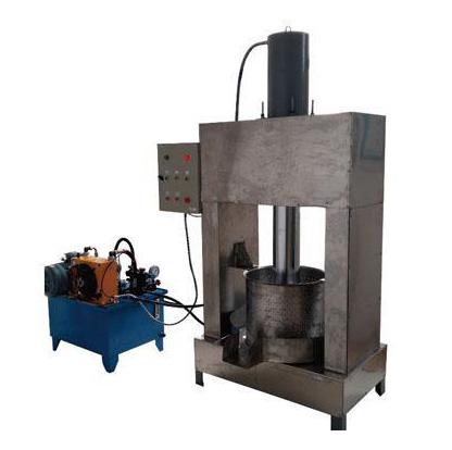 液壓榨汁機由液壓泵站和壓榨主機兩部分構成,液壓油缸驅動壓榨盤對放料框中的物料進行不斷的壓縮,放料桶中物料容積的不斷縮小,從而對物料進行壓榨脫水。